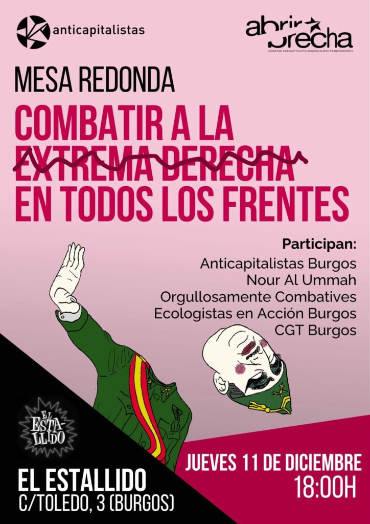 Intervienen militantes de Anticapitalistas Burgos, Nour Al Ummah, Orgullosamente Combatives, Ecologistas en Acción Burgos y CGT Burgos