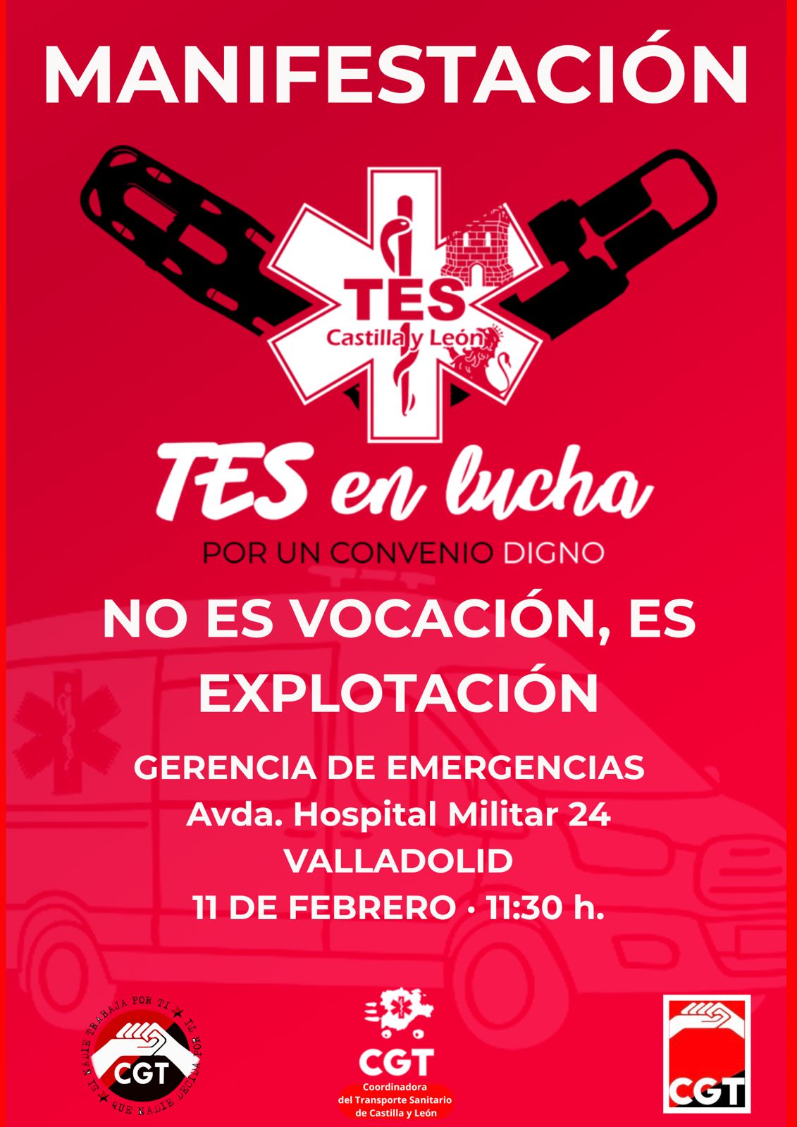 Con este encuentro, CGT quiere trasladar a la opinión pública que la precariedad del Transporte Sanitario en Castilla y León no es inevitable, sino consecuencia de decisiones políticas y de un modelo de concierto que mantiene a la comunidad como la parte precaria del mapa nacional. El sindicato ha anunciado que esta situación se enmarca en las movilizaciones del próximo 11 de febrero, respaldadas también por USO, USAE y SP‑TES, en defensa de unas condiciones dignas para todo el personal de transporte sanitario.