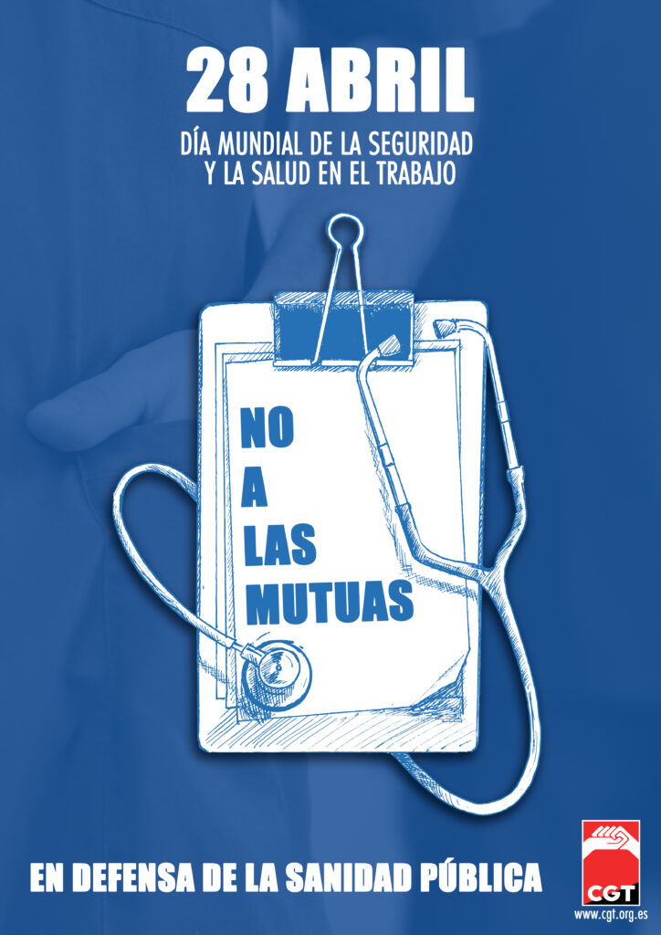 28 de abril “Día internacional de la salud y seguridad en el trabajo”, la CGT se concentra frente a una mutua para denunciar un sistema que protege los “beneficios económicos” de la patronal por encima de la integridad física y psicológica de la clase trabajadora.